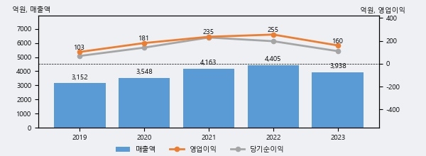 에스피지의 2023년 매출액은 3938억으로 전년대비 -10.6% 하락했고, 영업이익 역시 160억으로 전년대비 -37.3% 하락했다. 이 회사의 매출액 증감률과 영업이익 증감률은 각각 코스닥 하위 33%, 하위 40%에 해당된다.