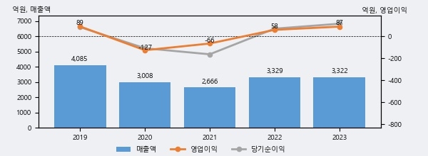 유아이엘은 2023년 매출액 3322억원과 영업이익 87억원을 기록했다. 전년대비 매출은 -0.2% 하락했고, 영업이익은 50.4% 상승했다. 이 회사의 매출액 증감률과 영업이익 증감률은 각각 코스닥 하위 50%, 상위 22%에 해당된다.