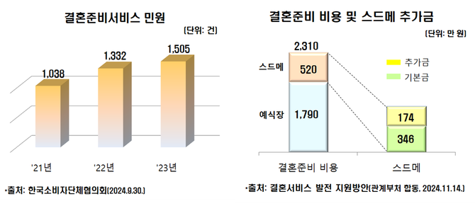 스튜디오‧드레스‧메이크업 등 결혼준비서비스 업체들은 추가 선택 가격(소위 옵션질)을 이용해 신혼 부부들에게 각종 가격을 부가하고 있으며, 서비스 가격이 오를수록 관련 민원도 동반 상승하는 추세다.