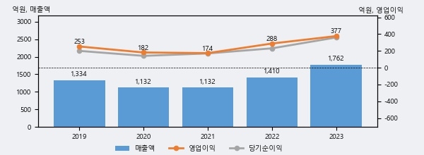 최근 3년간의 실적을 살펴보면 안정적 성장세를 보이고 있다. 최근 3년간 매출로 볼 때 매년 증가하고 있고 그 증가폭도 확대되고 있다.