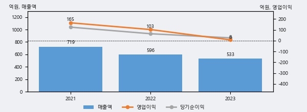 큐알티의 2023년 매출액은 전년대비 -10.7% 줄어든 533억원이고, 영업이익 역시 전년대비 -92.7% 줄어든 8억원을 기록했다. 이 회사의 매출액 증감률과 영업이익 증감률은 각각 코스닥 하위 33%, 하위 22%에 해당된다.