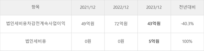 영림원소프트랩의 지난해 법인세 납부액은 5억원으로 2022년 0원보다 5억원(100%) 증가했고, 법인세 유효세율(법인세비용/법인세차감전순이익)은 11.6%를 기록했다. 이는 회계 수치상으로만 봤을 때 순이익의 10% 이상을 세금으로 납부한 셈이다.