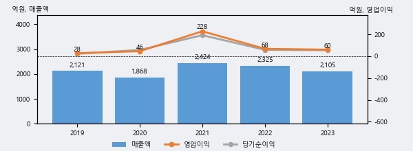 동양에스텍의 2023년 매출액은 2105억으로 전년대비 -9.5% 하락했고, 영업이익 역시 60억으로 전년대비 -11.4% 하락했다. 이 회사의 매출액 증감률과 영업이익 증감률은 각각 코스닥 하위 35%, 상위 48%에 해당된다.