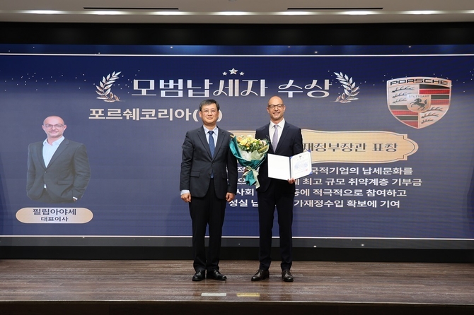 모범납세자에는 코오롱인더스트리(주)(유석진 대표이사), 포르쉐코리아(주) (마티아스부세, 필립아야세 대표이사)가 부총리 겸 기획재정부 장관 표창을, 현대모비스(주)(이규석 대표이사)가 관세청장 표창을 수상했다.