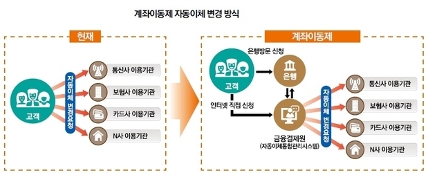 2016년 6월부터는 인터넷과 전국 은행지점에서 신문사, 학원 등 중소형 업체를 포함한 모든 요금청구기관에 대한 자동납부 신청 변경이 가능해지면서 계좌이동제가 완성된다.