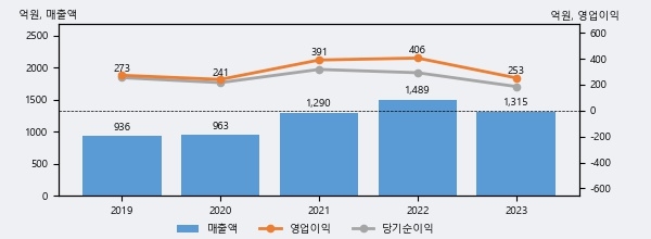 사람인의 2023년 매출액은 1315억으로 전년대비 -11.7% 하락했고, 영업이익 역시 253억으로 전년대비 -37.8% 하락했다. 이 회사의 매출액 증감률과 영업이익 증감률은 각각 코스닥 하위 32%, 하위 39%에 해당된다.