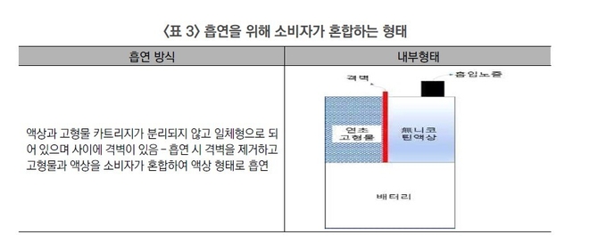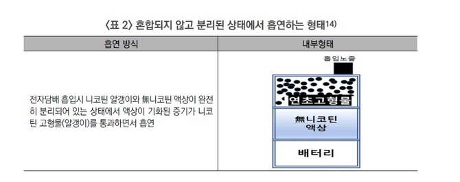 특히 과세 사각지대인 현재 전자담배(연초 고형물)의 경우 1g당 88원의 세율이 적용되지만, 액상형 전자담배는 1mL당 628원의 세율을 부과한다. 문제는 납세의무 성립시기가 반출할 때인 점을 노려 신형 전자담배가 고체상태인 연초 고형물과 무(無)니코틴 용액을 분리한 상태로 판매하면서 소비자가 흡연시점에 혼합하는 용량보다 세금을 적게 내고 있다는 점이다.