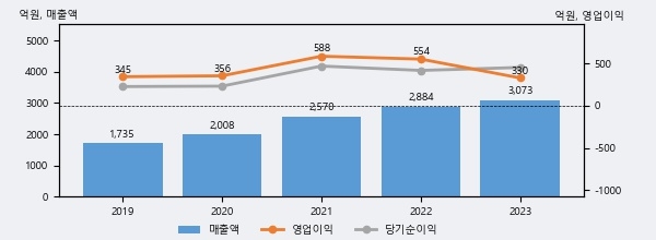 최근 3년간의 실적을 살펴보면 안정적 성장세를 보이고 있다. 최근 3년간 매출로 볼 때 매년 꾸준히 증가하고 있다. 다만 최근에 그 증가폭이 다소 감소하고 있다.