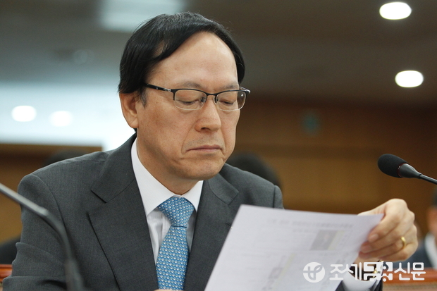 (조세금융신문=전한성 기자) 농협중앙회·농협금융지주·NH개발·농협자산관리·농협정보시스템·농협생명보험·농협손해보험·NH투자증권·NH-CA자산운용·농협캐피탈·NH선물·NH저축은행에 대한 국회 농림축산식품부해양수산위원회의 국정감사가 6일 서울 중구 새문안로 농협중앙회에서 열린 가운데 김용환 농협금융지주대표이사회장이 자료를 살피고 있다.