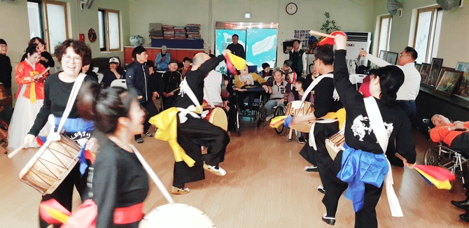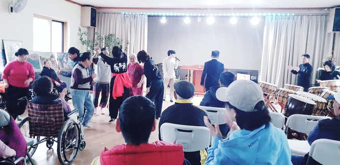 ‘난타 어울림’ 회원들이 마련한 공연을 통해 춤과 노래를 은혜동산 원생들에게 선사했다.