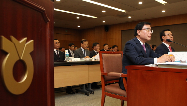 (조세금융신문=전한성 기자) 농협경제지주에 대한 국회 농림축산식품부해양수산위원회의 국정감사가 7일 서울 중구 새문안로 농협중앙회에서 열린 가운데 이기수(왼쪽) 축산경제대표이사, 이상욱 농업경제대표이사가 나란히 앉아 의원들의 질의를 듣고 있다.