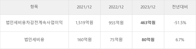 골프존뉴딘홀딩스의 지난 3년 동안 법인세 납부액 추이를 보면 2022년에는 감소했으나, 작년에는 80억원으로 증가했다.