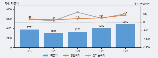 최근 3년간의 실적을 살펴보면 안정적 성장세를 보이고 있다. 최근 3년간 매출로 볼 때 매년 증가하고 있다. 다만 최근에 그 증가폭이 다소 감소하고 있다.