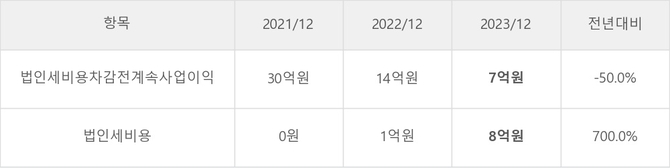 육일씨엔에쓰의 지난해 법인세 납부액은 8억원으로 2022년 1억원보다 7억원(700.0%) 증가했고, 법인세 유효세율(법인세비용/법인세차감전순이익)은 114.3%를 기록했다. 이는 회계 수치상으로만 봤을 때 순이익의 100% 이상을 세금으로 납부한 셈이다.