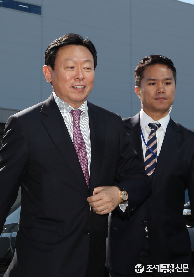 (조세금융신문=전한성 기자) 신동빈 롯데그룹회장이 12일 오전 인천 중구 운서동 롯데면세점 통합물류센터에서 열린 롯데면세점 비전 선포식에 참석하기 위해 입장하고 있다.