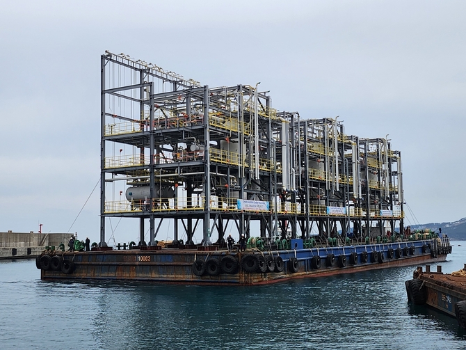 목포에서 제작된 PAU 모듈은 목포 대불항에서 선적된 후 남해를 따라 이틀간 470km를 운송해 울산 현장에 안전하게 설치됐다. 이로써 현대엔지니어링은 설계부터 구매, 모듈 제작 관리, 육·해상 운송, 현장 설치까지 전 과정을 총괄하며 PAU 모듈 기술력을 입증했다.