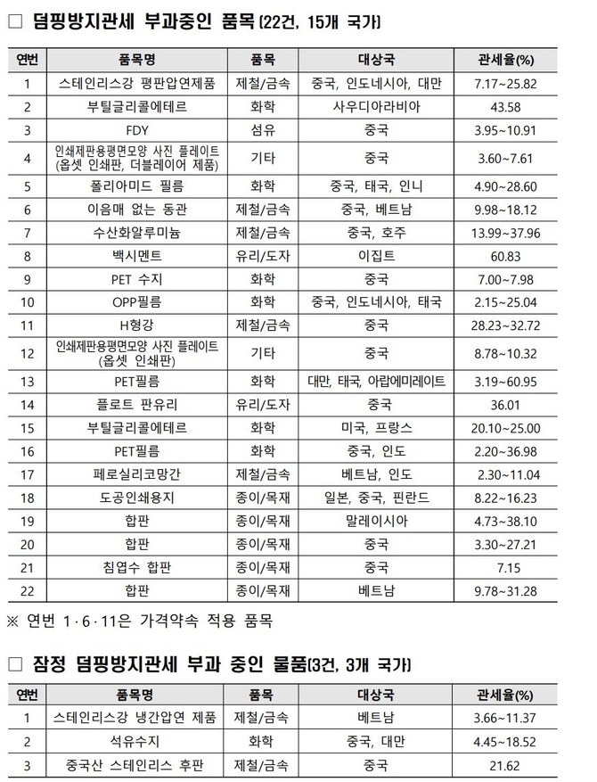 관세청은 최근 ▲덤핑방지관세가 부과되지 않는 제3국을 경유한 우회 수입 ▲관세율이 낮은 공급사 명의 도용 ▲품목번호·규격 조작 ▲가격 약속 위반 등의 불법 수법이 활용되고 있다고 지적했다.