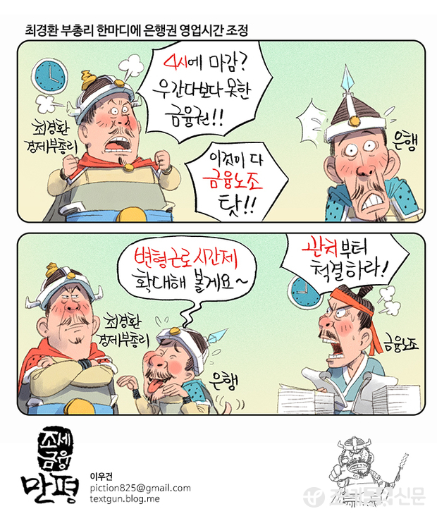 [조세금융 만평] 최경환 부총리 한마디에 은행권 영업시간 조정