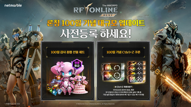 (조세금융신문=이정욱 기자) 넷마블이 서비스 중인 PC·모바일 MMORPG ‘RF 온라인 넥스트’가 출시 100일을 맞아 대규모 콘텐츠 업데이트를 예고하고, 이에 앞서 사전 등록을 진행한다.