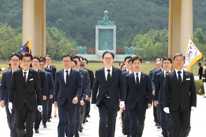 이날 현충원 참배에는 최재봉 차장과 본청국장 11명, 직속과장 3명, 수석과장 11명, 정책보좌관 등 총 28명이 동행했다.