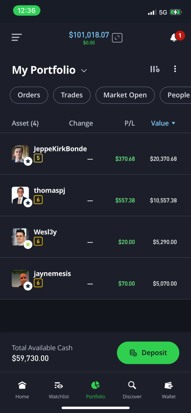 4명의 투자자를 선택해 copy하고 약 일주일간 가상 포트폴리오의 변동을 추적하였다. 단기 수익은 소폭의 손익을 반복하는 수준이었으나, 투자자들의 전략적 판단과 장기 성과에 대한 신뢰를 바탕으로 투자 경험을 쌓는 데 큰 도움이 되었다.