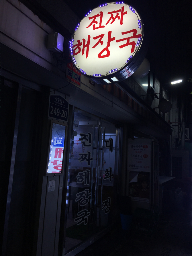호텔 로비를 나와 거리로 나섰다. 동대문 밤거리는 여전히 휘황찬란했다. 어차피 이리된 김에 허기도 달랠 겸, 소주 한 잔 곁들여 밤을 보내자는 생각으로 불이 켜진 해장국집을 찾았다. 그렇게 발길이 닿은 곳이 바로 ‘대화정’이라는 이름의 해장국집이었다. 간판보다 ‘진짜 해장국’이라는 별칭으로 동대문 상인들 사이에서 더 잘 알려진, 40년 노포였다.