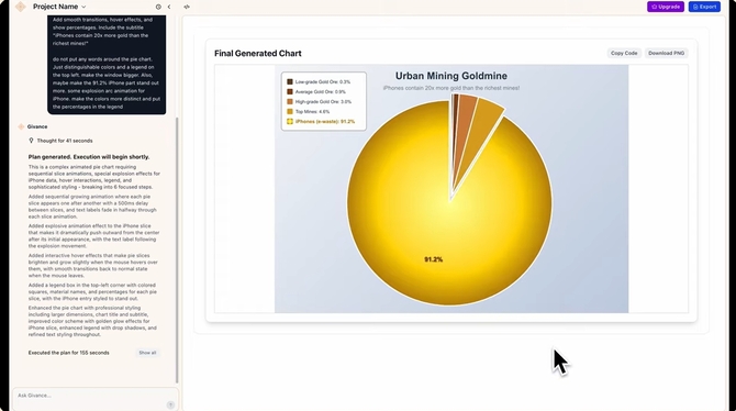 기번스의 모델은 단순 차트를 넘어 지도, 네트워크 다이어그램, 대시보드와 같은 복합적 시각자료까지 생성할 수 있도록 설계되고 있다. 사용자는 데이터만 입력하면 복잡한 시각 자료를 자동으로 제작할 수 있어 디자인 리소스를 줄이고 콘텐츠 생산성을 높일 수 있다.