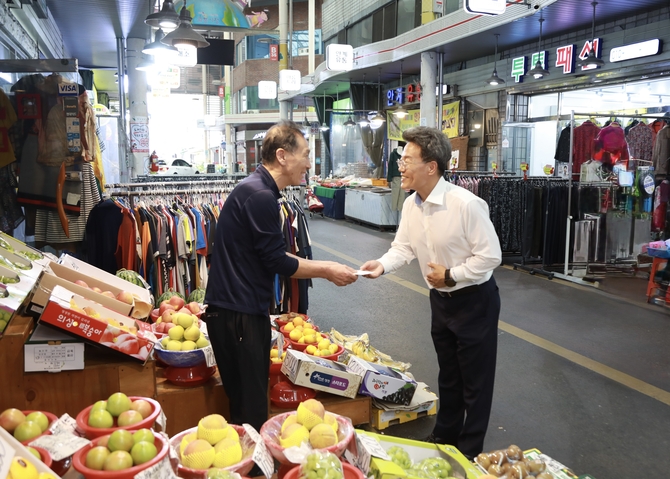 이날 한경선 청장은 달서구에 소재한 와룡시장을 방문하여 고물가 속 위축된 소비 심리와 경기침체로 경제적 어려움을 겪고 있는 소상공인들을 격려하고, 전통시장 활성화에 힘을 보탰다.