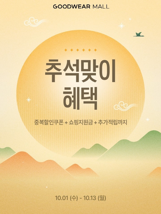 신성통상에 따르면 굿웨어몰은 추석 연휴를 맞아 매일 1000포인트를 지급(당일 사용 한정)한다. 이와함께 2만원 이상 구매 시 최대 1만원 할인 쿠폰(기간 중 1회 한정), 기본 적립 외 1% 추가 적립 등 고객들을 대상으로 ‘삼중 혜택’을 제공한다. 특히 행사 기간 모두 참여하는 고객의 경우 최대 1만3000포인트를 받을 수 있다.