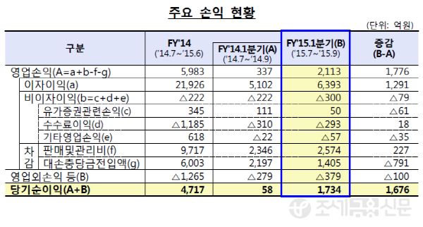 이는 작년 7∼9월(2014회계연도 1분기) 흑자로 전환한 이후 5개 분기 연속 흑자를 이어가고 있는 것이다.