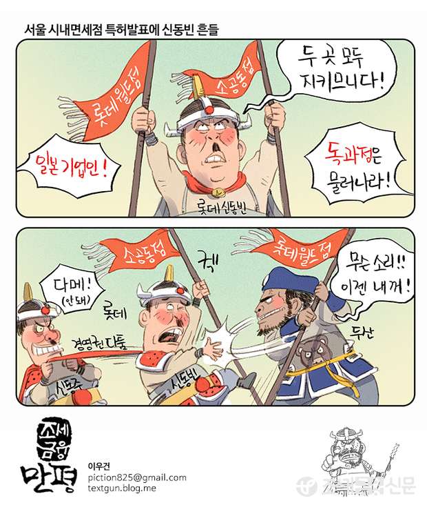[조세금융 만평] 서울 시내면세점 특허 발표에 신동빈 흔들