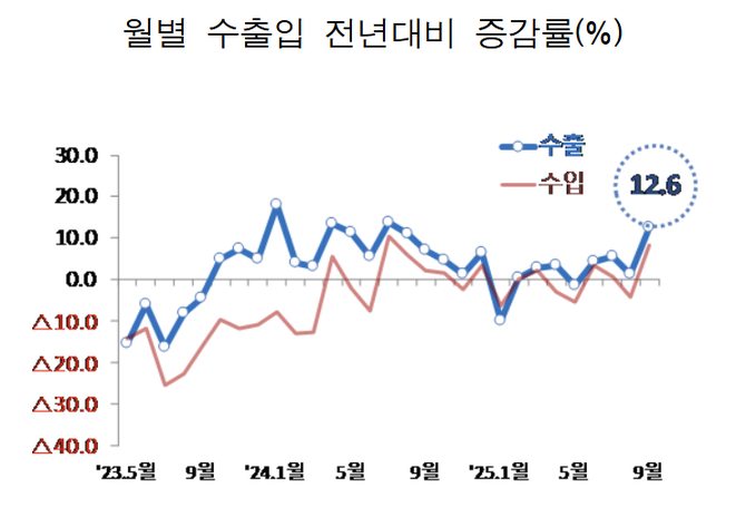 누적 수입액을 보면 2025년 9월 기준 수입액은 전년 동월 대비 43.0억달러 증가한 564.0억 달러에 달한다.