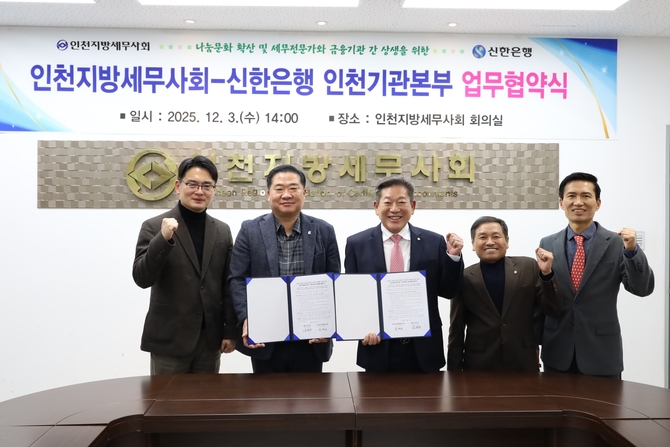한편 이날 협약식에는 인천지방세무사회에서 최병곤 회장, 송재원 부회장, 주영진 부회장이 참석했으며, 신한은행에서는 남창신 인천기관본부장과 이태훈 인천시청금융센터장이 함께했다.