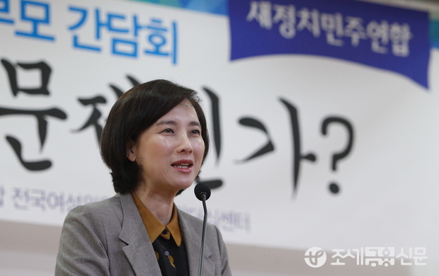 (조세금융신문=전한성 기자) 새정치민주연합 전국여성위원회가 주최하는 '역사교과서 국정화 저지를 위한 학부모 간담회 - 국정화 교과서 무엇이 문제인가?'가 20일 오전 서울 여의도 국회 의원회관에서 열린 가운데 새정치민주연합 유은혜 의원이 축사를 하고 있다.