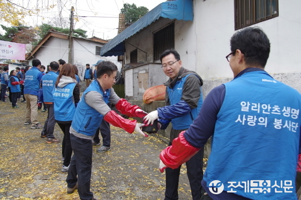 (조세금융신문=옥정수 기자) 알리안츠생명은 이명재 사장을 비롯한 임직원 70여명이 서울 성북구 정릉 3동 일대에서 ‘사랑의 연탄나눔’ 봉사활동을 펼쳤다고 20일 밝혔다.