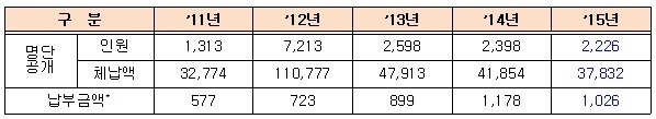 (조세금융신문=김태효 기자) 국세청이 총 체납액 3조8천억 원 규모의 2015년 고액·상습체납자 2226명의 명단을 공개했다.