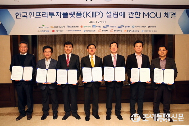 (조세금융신문=옥정수 기자) 산업은행(회장 홍기택)은 서울 여의도에 위치한 본점 별관에서 우정사업본부, 한국교직원공제회, 삼성생명 등 18개 금융기관이 참여하는 ‘한국인프라투자 플랫폼(KIIP)’ 설립을 위한 MOU를 체결했다고 27일 밝혔다.