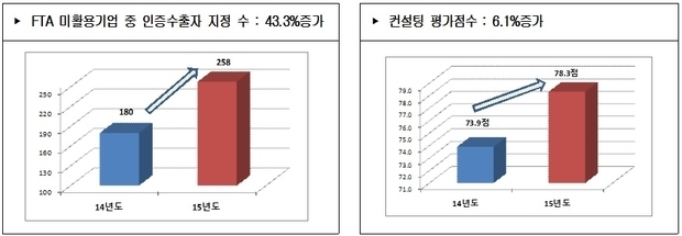 컨설팅 결과, FTA 미활용 472개 기업 가운데 451개 기업(96%)이 컨설팅 이후 FTA를 활용하게 됐고, 이 중 258개 기업(55%)은 원산지인증수출자로 신규 지정됐다.