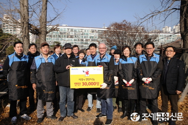 (조세금융신문=옥정수 기자) 메트라이프생명(사장 데미언 그린)은 자사 임직원과 재무설계사(FSR: Financial Services Representative)로 구성된 자원봉사단이 연탄 나눔 봉사활동을 진행한다고 2일 밝혔다.
