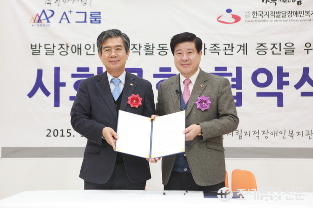 (조세금융신문=옥정수 기자) 에이플러스그룹(회장 곽근호)은 보라매공원 내 서울시립지적장애인복지관에서 한국지적발달장애인복지협회(회장 김성조)와 업무협약을 체결했다고 4일 밝혔다.