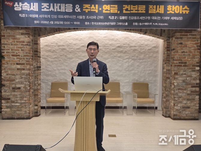 제1세션 특강에서는 이성재 세무회계 인성 대표세무사가 ‘상속증여세 핵심실무해설(상속세 조사 대응)’을 주제로 진행했으며, 제2세션에는 김용민 진금융조세연구원 원장이 ‘금융상품과 세금(주식·연금, 건보료 절세 핫이슈)’에 대해 심도 있는 강의를 펼쳐 참석자들의 큰 호응을 얻었다.