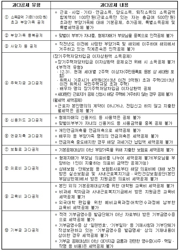 또한 "공제항목을 꼼꼼히 챙겨 누락 없이 공제받는 것도 중요하지만, 실수 또는 고의로 과다하게 공제받지 않는 것도 절세전략이 될 수 있다"고 강조했다.