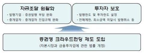 우리나라에서 2016년 1월 25일 시행되는 크라우드펀딩은 2015년 7월 자본시장법 개정을 통하여 '온라인소액투자중개'라는 이름으로 증권형크라우드펀딩이 법제화됨에 따라 크라우드펀딩의 신뢰 기반을 갖추게 되었다.