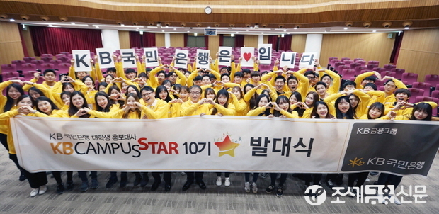 (조세금융신문=김사선 기자) KB국민은행(은행장 윤종규/www.kbstar.com)은 지난 22일부터 1박2일 일정으로 일산연수원에서 대학생 홍보대사 ‘KB캠퍼스스타’ 10기 발대식을 개최했다.