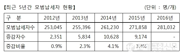 서울시는 최근 경기침체의 어려움 속에서도 지방세를 성실하게 납부한 자를 널리 알리기 위해 28만1,032명을 2016년 모범납세자로 선정했다고 2일 밝혔다.
