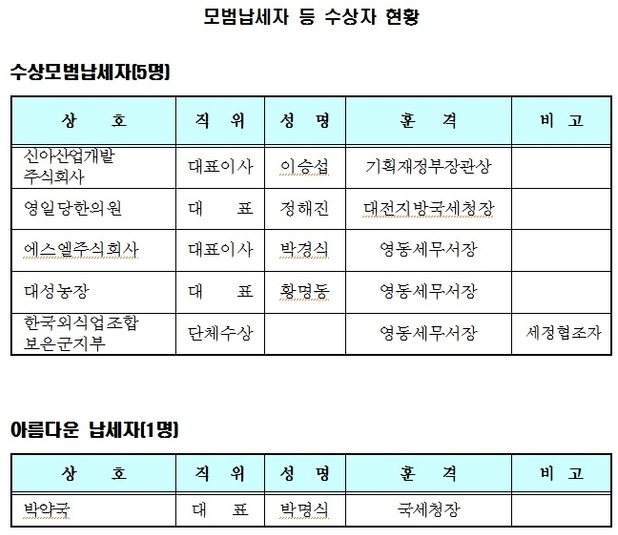 행사를 후에는 수상자 및 초청 인사들에게 금년도 국세행정운영 방향 등을 소개하고, 이들과 오찬을 함께 하면서 성실납세에 대한 감사의 마음을 전하였다.