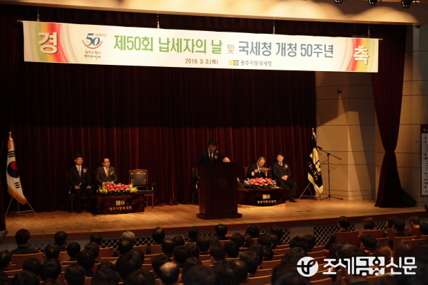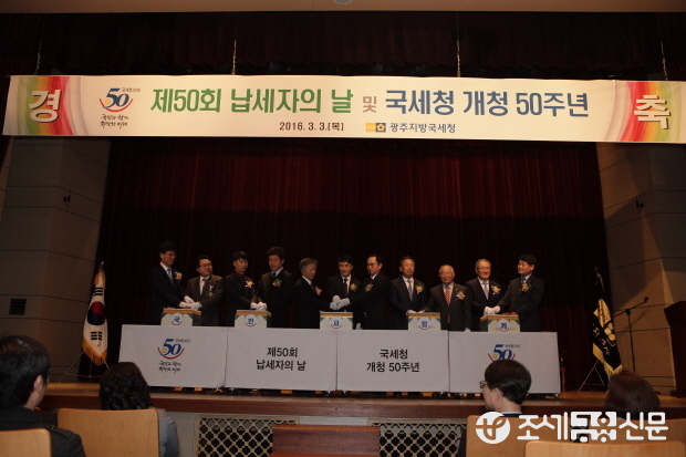 (조세금융신문=나홍선 기자) 광주지방국세청(청장 한동연)은 3일 오전 10시 30분부터 정부광주합동청사 2층 강당에서 지역 경제단체장과 국세공무원 등 250여명이 참석한 가운데 ‘제50회 납세자의 날 및 국세청 개청 50주년’ 기념식 행사를 개최했다.