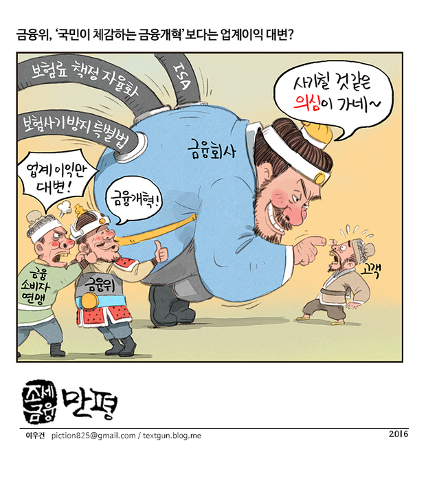 [조세금융 만평] 금융위, '국민이 체감하는 금융개혁'보다는 업계이익 대변?
