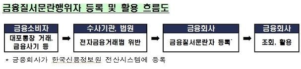 ‘금융질서문란’ 행위는 통장이나 현금카드 등을 양도 혹은 양수하거나 대가를 받고 거래한 경우에 해당한다. 또 대출과 관련한 사기죄를 저지른 자도 포함된다.