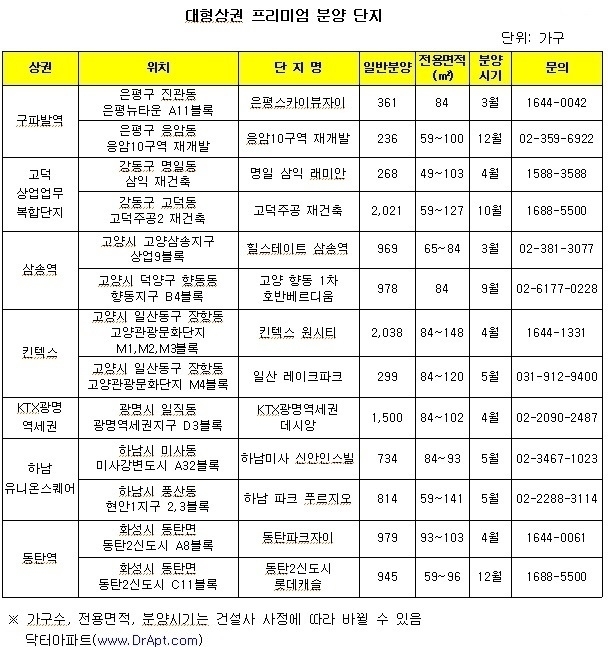 수도권 대형상권 인근에서 올해 분양예정인 단지로는 ▲고덕상업업무복합단지 ▲삼송역 신세계복합쇼핑몰 ▲동탄역 광역비즈니스 콤플렉스 ▲하남 유니온스퀘어 등이 주목을 받고 있다.